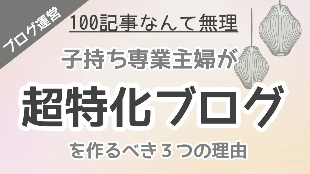 【ブログ運営】100記事なんて無理!子持ち専業主婦が「超特化ブログ」を作るべき3つの理由